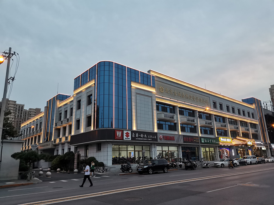 项目简介:该亮化项目为北京石景山区古城泰然投资管理公司物业办公楼夜景亮化项目,泰然投资管理公司位于北京石景山古城村,是一家高服务,高品质的物业公司,该项目是物业办公楼楼体亮化项目,主要采用12Wled线条灯和24w led洗墙灯,24w led投光灯。