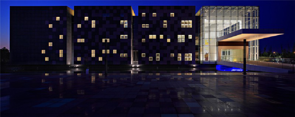 项目简介:固安展馆位于正在飞速发展的城市固安,毗邻计划于2015 年落成的北京第二国际机场,建于大型水景之上,与一连桥相连,出入甚为方便。建筑由16 个方块组成,包含展示区和办公区。每个方块的外周,规格为16 米×16 米,由大小为2 米×2 米的玻璃或者石头构成。